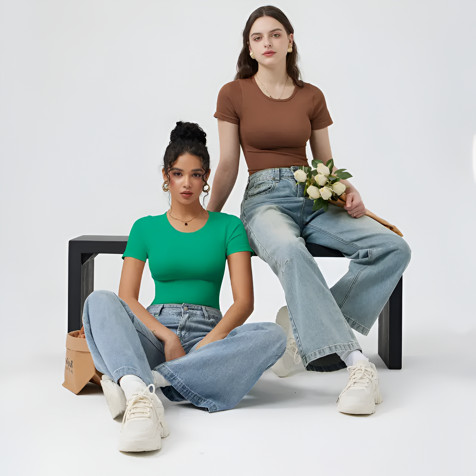 Upgrade your basics with the Elora 2-Piece Ribbed Short Sleeve Bodysuits – chic, flattering, and designed for everyday wear.